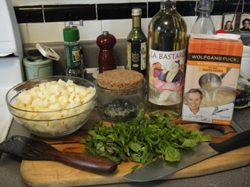The smaller the potatoes the quicker they cook. Love, love, love the Puck free range chicken stock, it is worth the premium price!