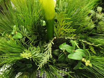 If you are lucky enough to receive a bouquet that has flowers and evergreens be sure to water it every day as the evergreens may drink up all the available water and then your flowers could wilt or at best not last as long as they should – so top off that bouquet at least once a day!