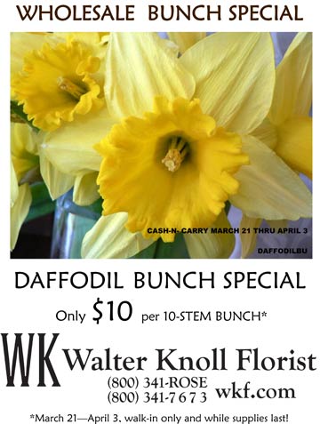 stop into one of our stores for our wholesale bunch special – 10 stem daffodil bunches for $10