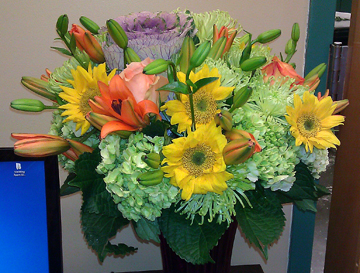 Our June winner in our Flowers for a Year Facebook contest, Kevin Harder, picked out this mix of flowers for his first seasonal bouquet – designed by Walter Knoll Florist master designer, Scott Hepper. PRETTY!