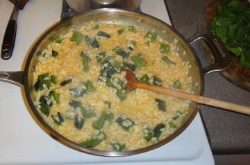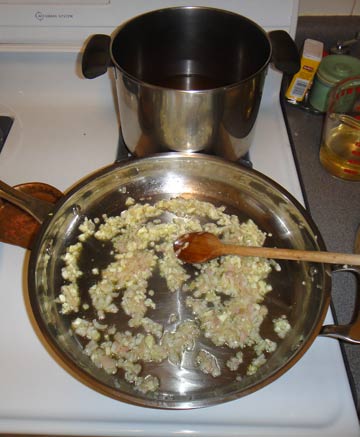 add garlic and rice and cook, stirring constantly for about 3 minutes