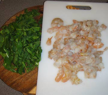 1 lb peeled, deveined, chopped shrimp pieces (1″ dice)