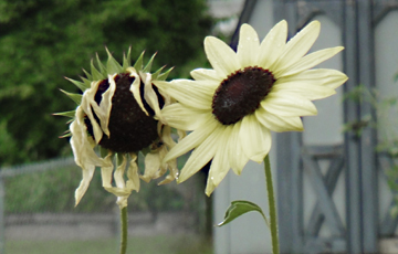 This year I am growing some “white” sunflowers – this couple appears to be having one of those “May/December” relationships!