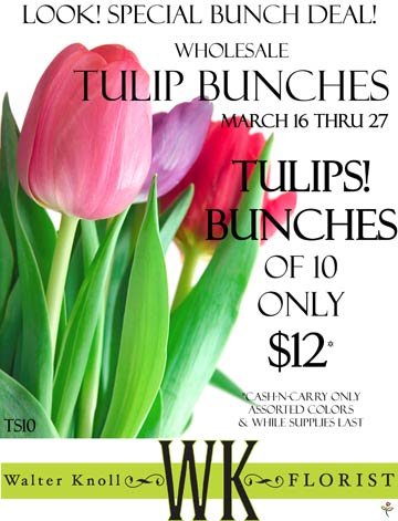Stop into one of our stores for our Wholesale Cash-N-Carry Tulip Bunch Special