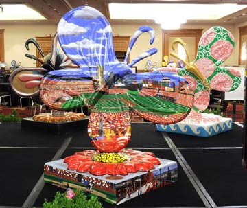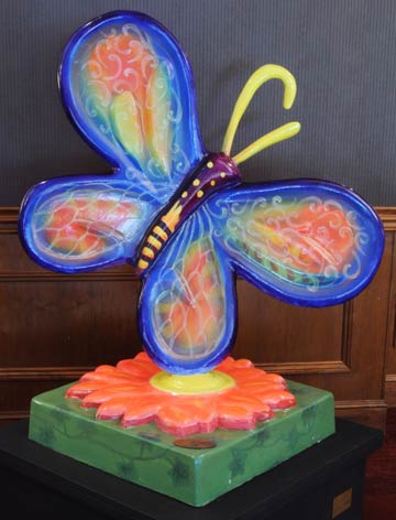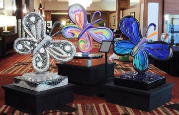 Saturday was the big “Auction Gala” of the Wings in the City butterflies – held at the St Louis Hyatt at the Arch this past Saturday evening. Anyone who has been anywhere around St Louis this past month or so has seen the butterflies decorated by local artists (many sponsored by local businesses) on display at parks and shopping centers as well as in the City of Clayton, downtown St Louis, the Loop and the Central West End.