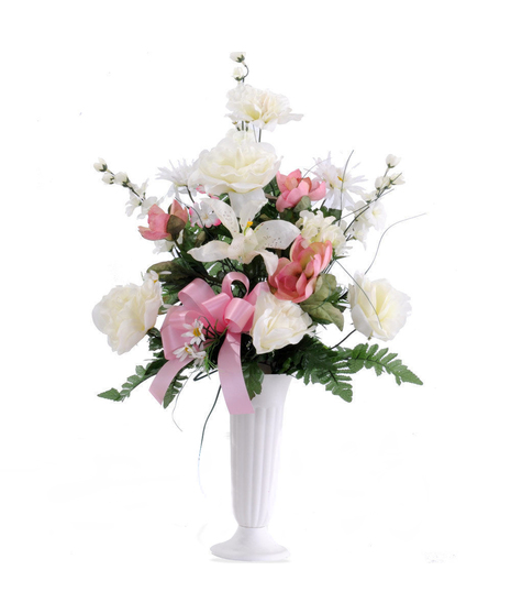 This item is a cemetery cone grave decoration and not suitable for funeral. As shown is our silk pink & white feminine cemetery cone for all seasons. A similar look and feel can be made in fresh flowers - Please select FRESH or SILK in Options