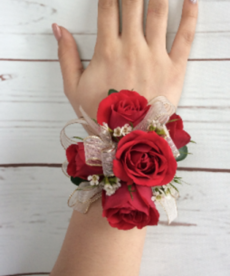 Choose your color, and let our team make something beautiful for your special night. All our corsages are made to be wore on the wrist. Ribbon selection and variety of flowers may vary depending on availability.