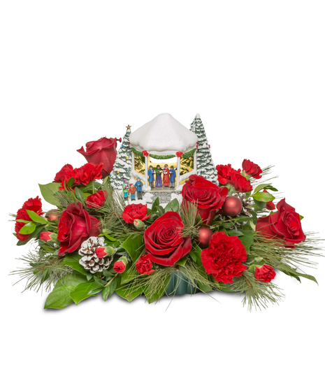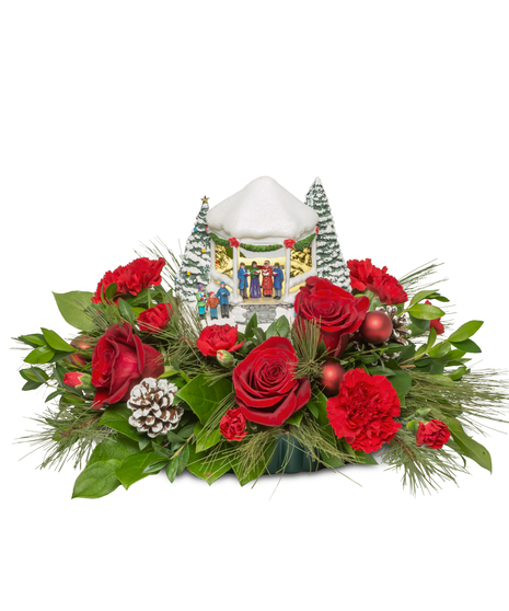 As you gaze upon it, you'll be transported to a serene winter wonderland, with a snow-covered gazebo nestled amidst a forest of frosty trees. The scene is alive with the heartwarming carolers, celebrating the joy and spirit of Christmas. But the magic doesn't stop there - the gazebo cast a warm, festive glow that will illuminate your surroundings.