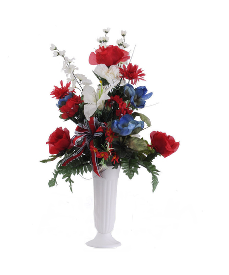 This item is a cemetery cone grave decoration and not suitable for funeral. Red, White & Blue Patriotic Cemetery Cones suitable for any season. As shown is silk, similar look and feel can be made with Fresh flowers. Please select SILK or FRESH in Options