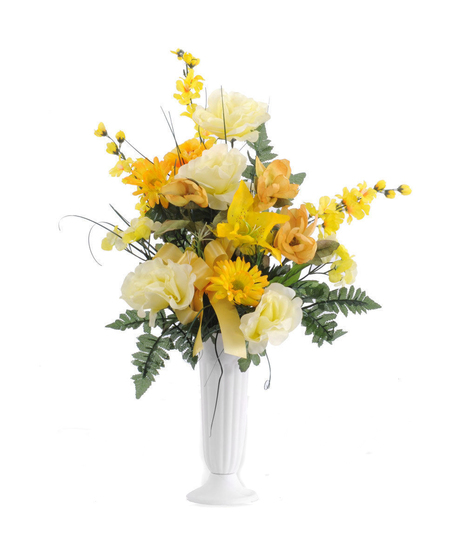 This item is a cemetery cone grave decoration and not suitable for funeral. As shown is our silk arrangement of light yellow to orange flowers - perfect display for summer or fall. In two sizes. A similar look and feel can be made in Fresh flowers - please select SILK or FRESH in Options