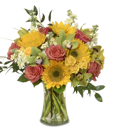 Experience the radiance of our Sunny Disposition bouquet, and share in the joy it brings. It's a bright, cheerful arrangement that's perfect for any occasion. Order your Sunny Disposition bouquet today, and let the sunny colors and uplifting blooms spread happiness and positivity wherever they go.