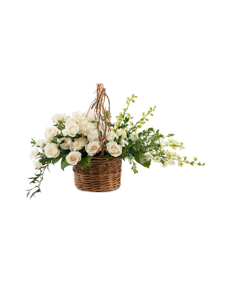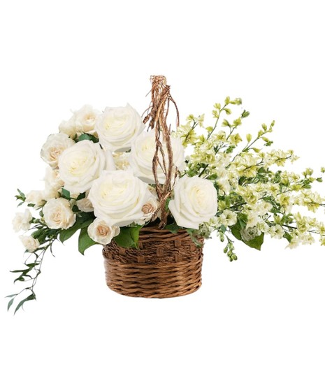 Basket of Life is created in an elegant wicker basket, filled with graceful white blooms, this is a timeless expression of comfort and peace. Designed in an 8" handled basket, it offers a soft, natural beauty that brings light and serenity to any space. Perfect for a memorial service or as a heartfelt gesture sent to the home, this arrangement conveys your care with quiet dignity.