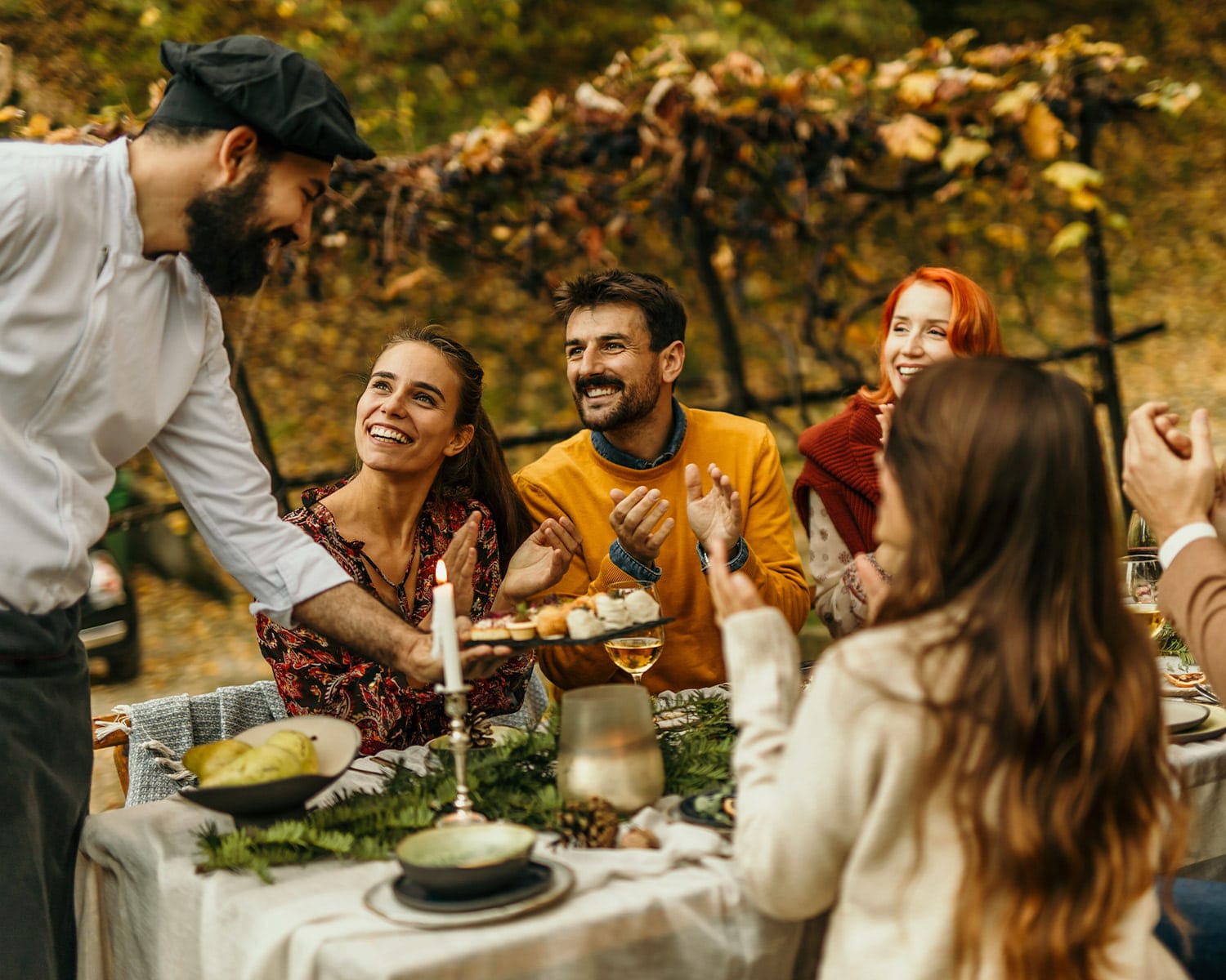 Friendsgiving is a combination of the words "friends" and "Thanksgiving" that refers to an informal or casual meal held with friends either on or around Thanksgiving. In short, it's Thanksgiving reimagined with your closest circle, often with a slightly more relaxed atmosphere. First showing up in the zeitgeist around 2007, what started as a low-key dinner with friends (typically replacing a traditional Thanksgiving spent with family) has evolved into its own well-known and beloved holiday. It's a modern gathering that gives hosts and guests alike the freedom to set the tone, whether that means a potluck-style meal, a formal sit-down dinner, or something in between. As for when to celebrate Friendsgiving, well, that's up to you and your friends! While some host Friendsgiving on the third Thursday of November, others opt for a weekend date, or even Thanksgiving Day itself, making flexibility one of its defining features.