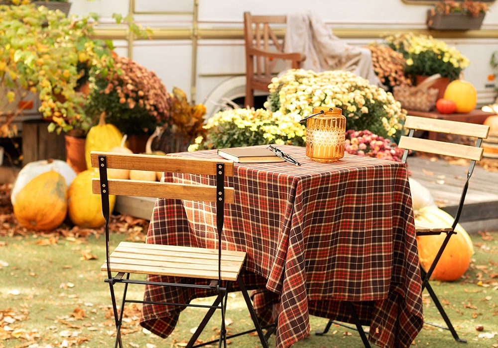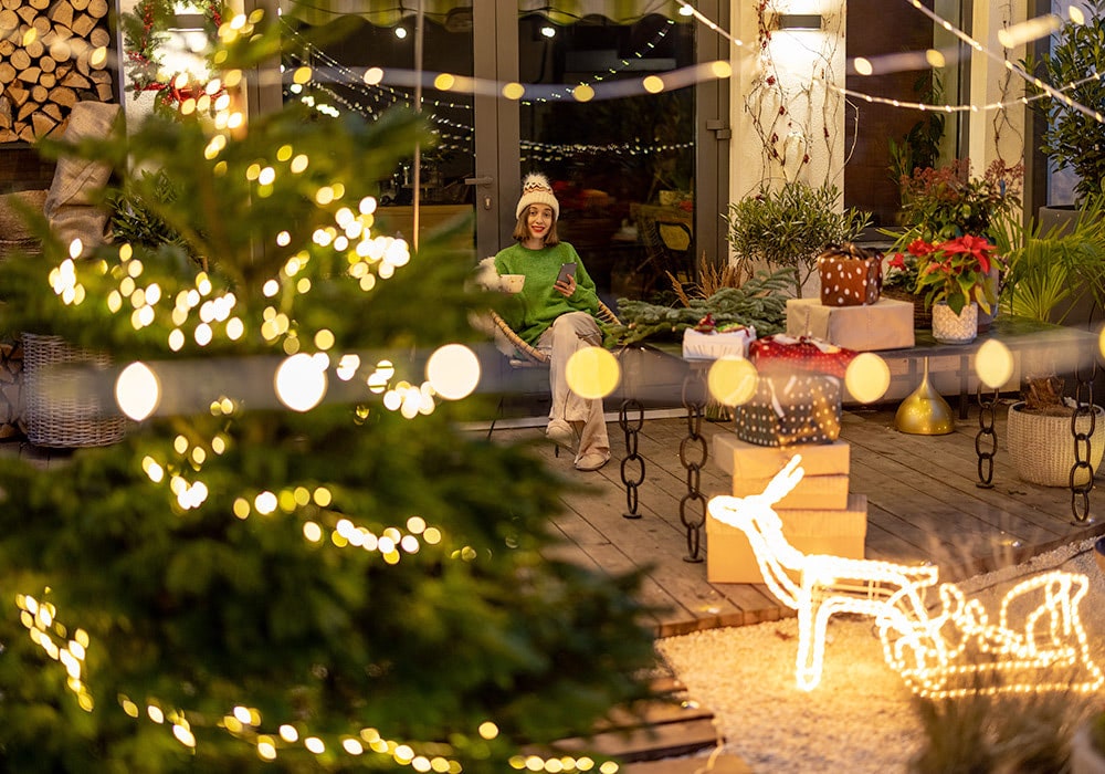Guests can also enjoy your outdoor spaces when the weather is nice or when you're hosting a barbecue. In this case, consider bringing fresh décor outside. A few well-placed potted plants, a garland on the patio railing, or seasonal flowers on the outdoor dining table can make your guests feel like they've stepped into a serene garden. Add fresh wreaths on doors and windows, enhancing the mood and ensuring the outdoor space feels just as inviting as the indoors. String lights, lanterns, and candles add a soft glow as the sun sets, creating a whimsical and romantic atmosphere.