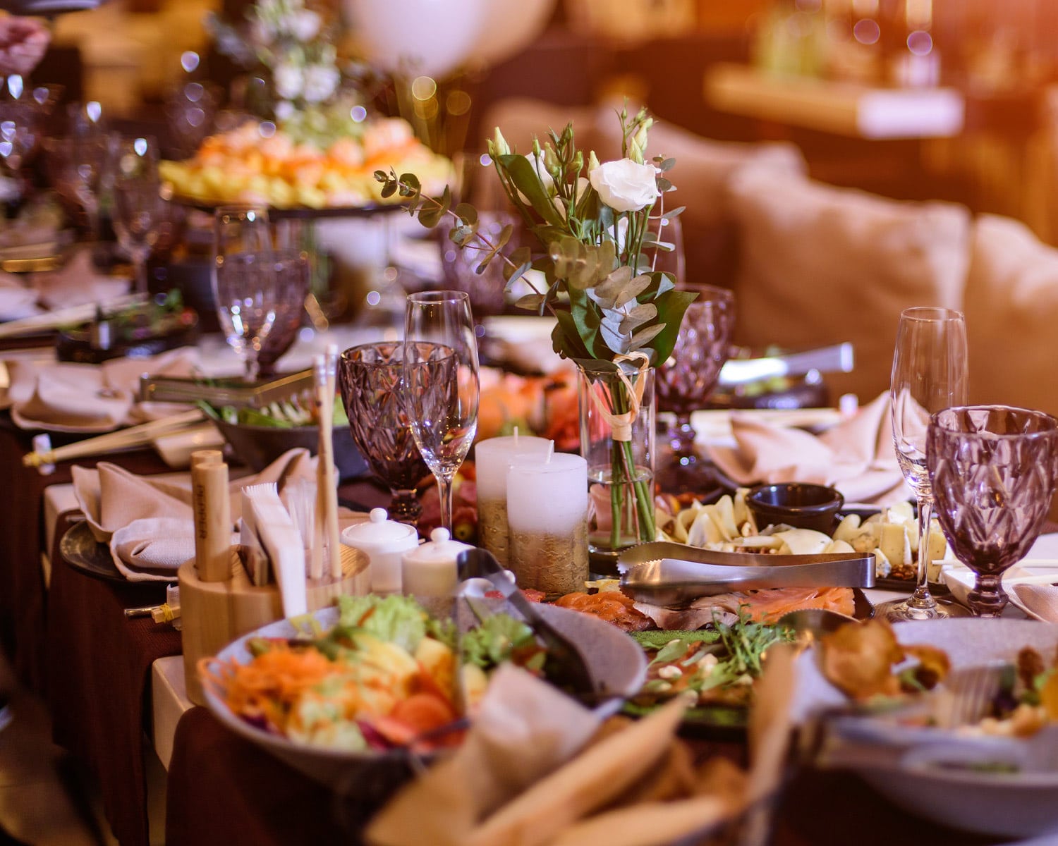 • Comfortable corners with throw blankets, low lighting, and snacks for guests who want to chat or take a breather