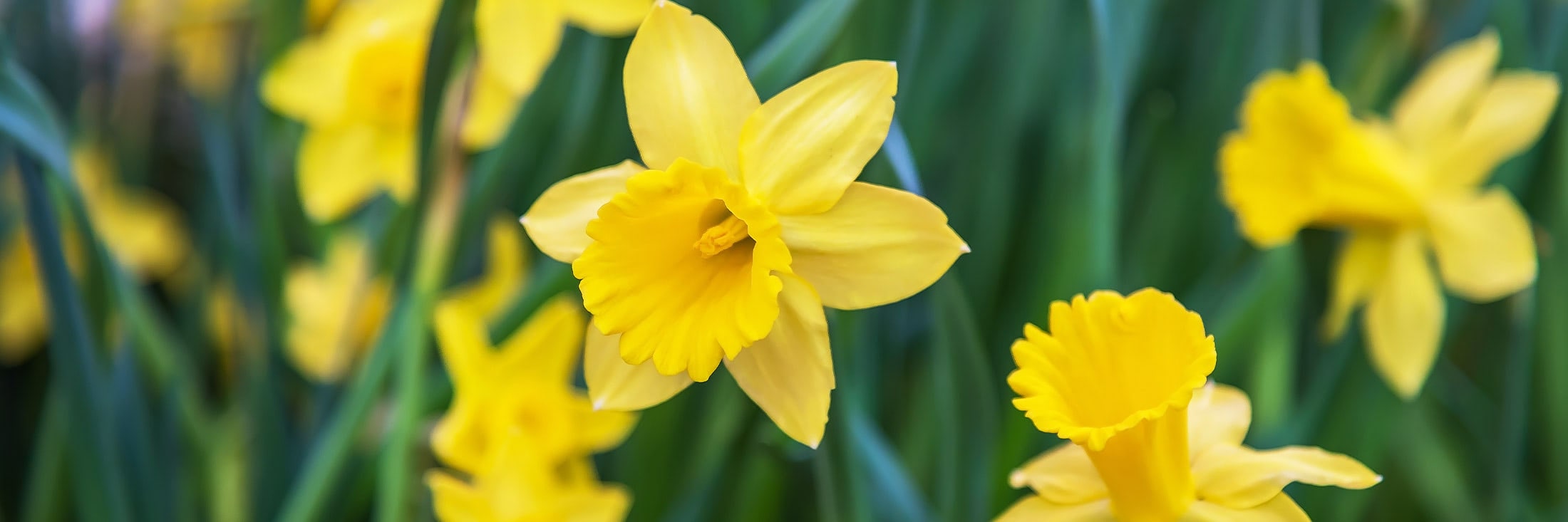 Daffodils, also known as Narcissus, are spring-blooming bulbs prized for their cheerful, trumpet-shaped flowers and vibrant colors. These easy-to-grow plants come in a variety of sizes and colors, ranging from traditional yellow to white, orange, and pink. Daffodils are a symbol of spring and renewal, often heralding the arrival of warmer weather with their bright blooms.