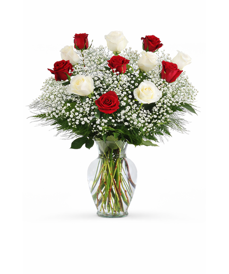 One Dozen Roses in Red & White Reality Flowers